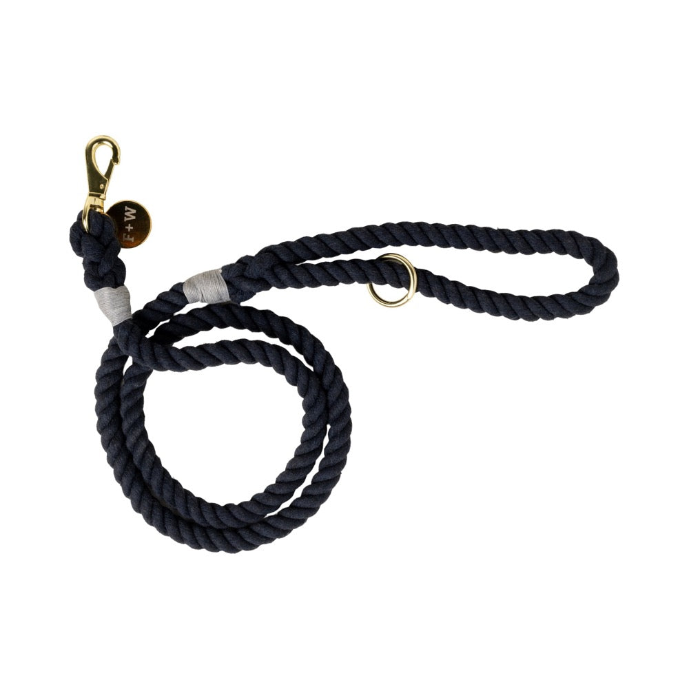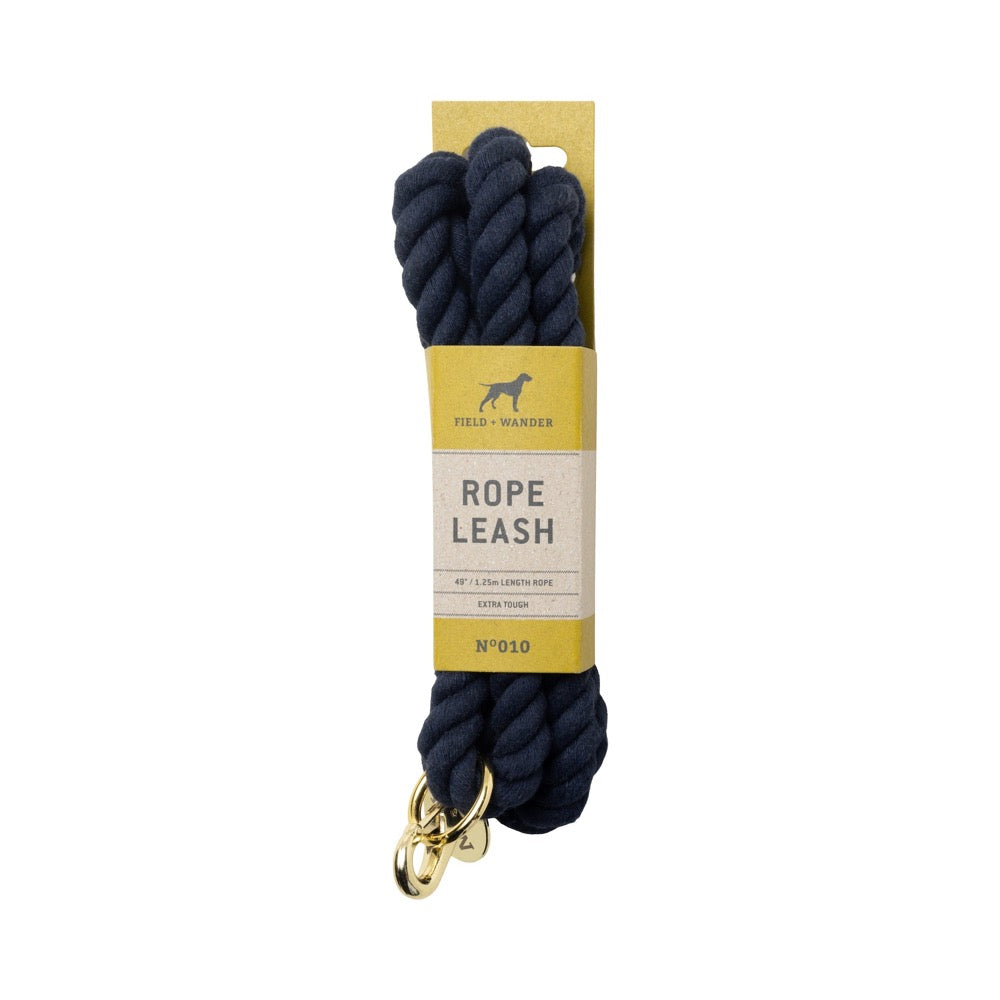 Turn heads on walks with your best furry friend using the Rope Leash - Navy from Field + Wander. This stylish navy dog leash is the perfect companion for everyday walks, exercise, training, and traveling with its durable twisted texture and brass finish hardware. The attachment ring on the loop handle keeps all your doggie bags and dog accessories handy.