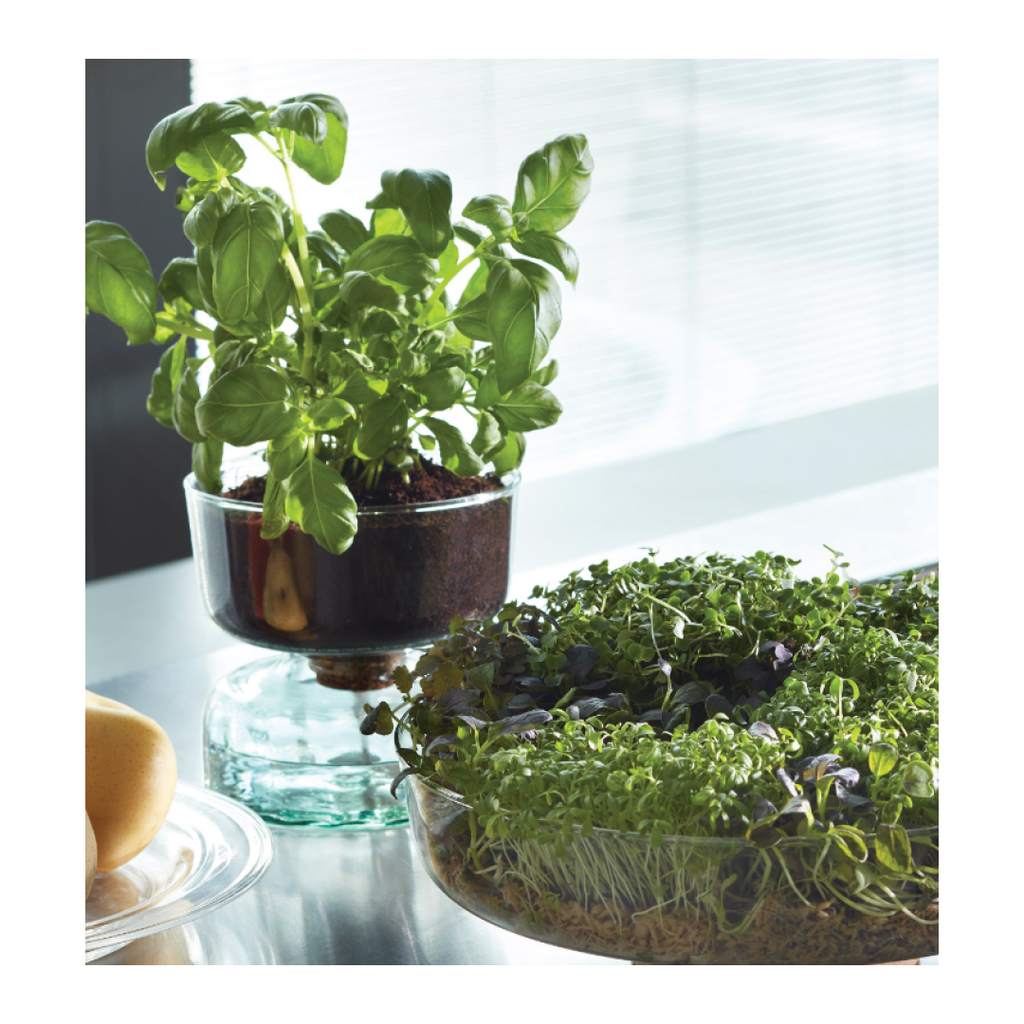 The Canopy self watering planter is mouth blown from recycled glass. Locally-sourced clear jars and bottles are sorted, crushed and heated in the furnace until molten. The skilled glassblower gathers, shapes and then blows the molten glass into different moulds to form the separate parts of the self-watering planter. Air bubbles will occur as part of this handmade process using 100% recycled materials. The cork is a natural material which is 100% biodegradable, recyclable and renewable based on a sustainable cycle.