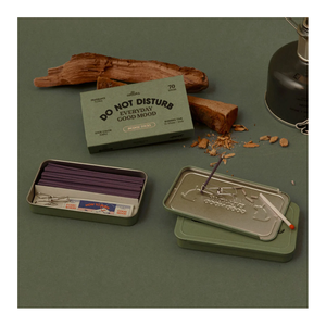 Do Not Disturb emits a subtle floral lavender scent to help focus calm the mind. Top notes of orchid and herb, middle notes of lavender, base notes of sandalwood and musk. To ignite, light the tip and allow to burn for 3 seconds then blow out. Burn time approx 15-20 mins per stick.