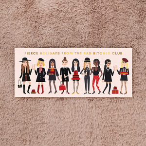 We’ve been bad, so we bought our own prezzies — cheers bitches! Extra long No. 10 sized card with gold foil.