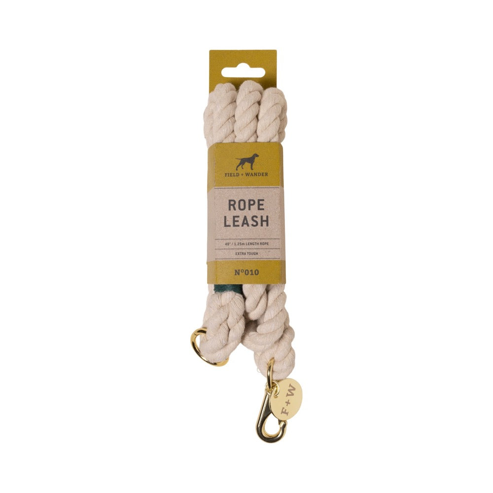 Turn heads on walks with your best furry friend using the Rope Leash - Natural Cream from Field + Wander. This stylish natural cream dog leash is the perfect companion for everyday walks, exercise, training, and traveling with its durable twisted texture and brass finish hardware. The attachment ring on the loop handle keeps all your doggie bags and dog accessories handy.