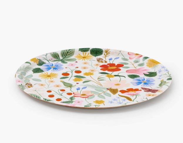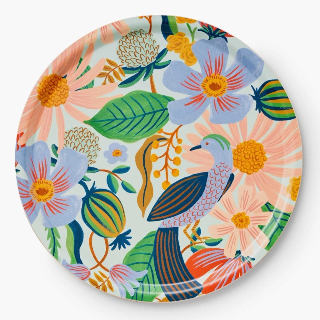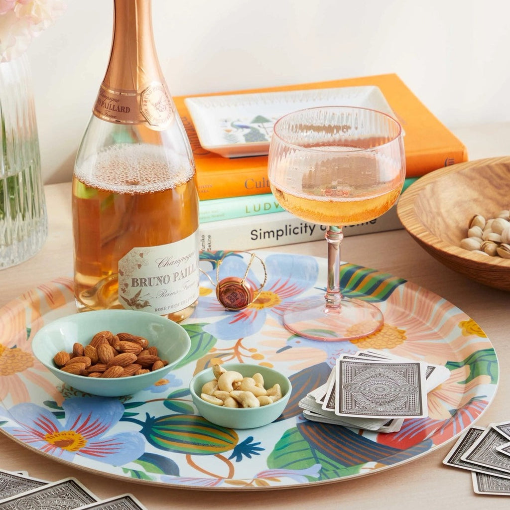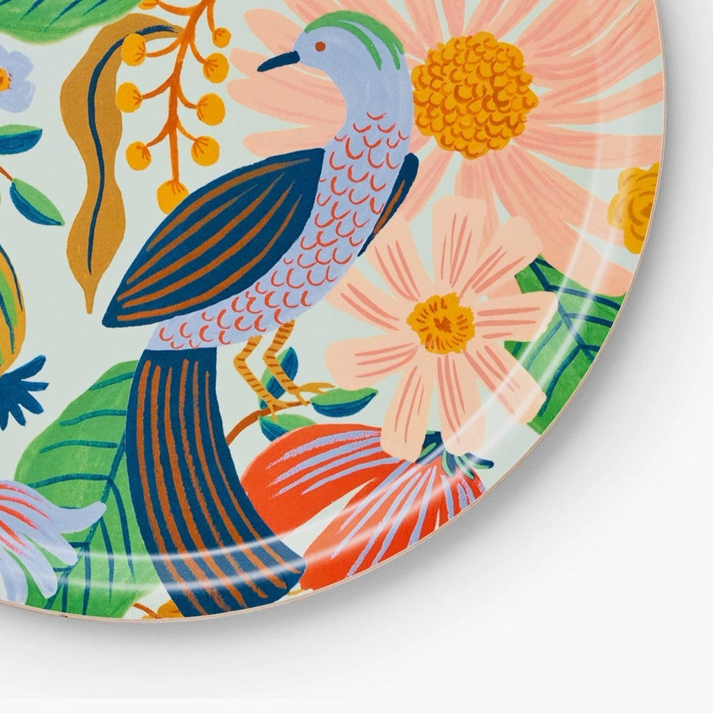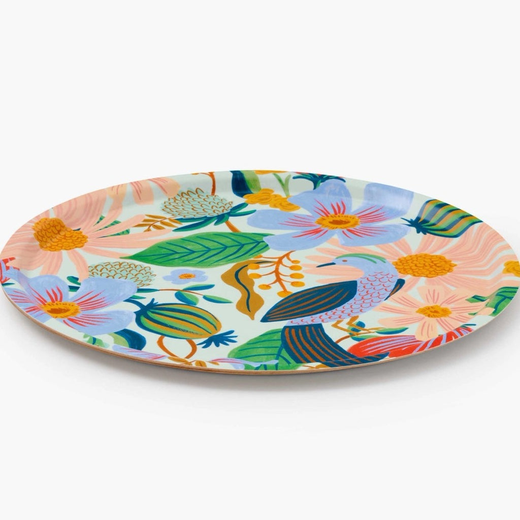 Our bent ply trays are as versatile as they are beautiful, handmade in Sweden from lightweight, FSC-certified birch. The laminated finish makes them perfect for entertaining inside and out, or adding a pop of color to your decor. This round tray features our vintage-inspired Dovecote design, and is perfect for coffee table decor or serving up a tray of drinks.