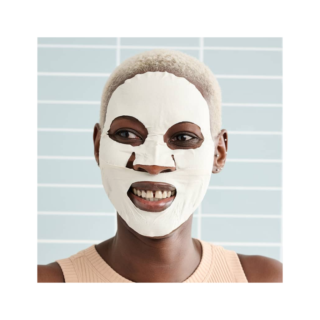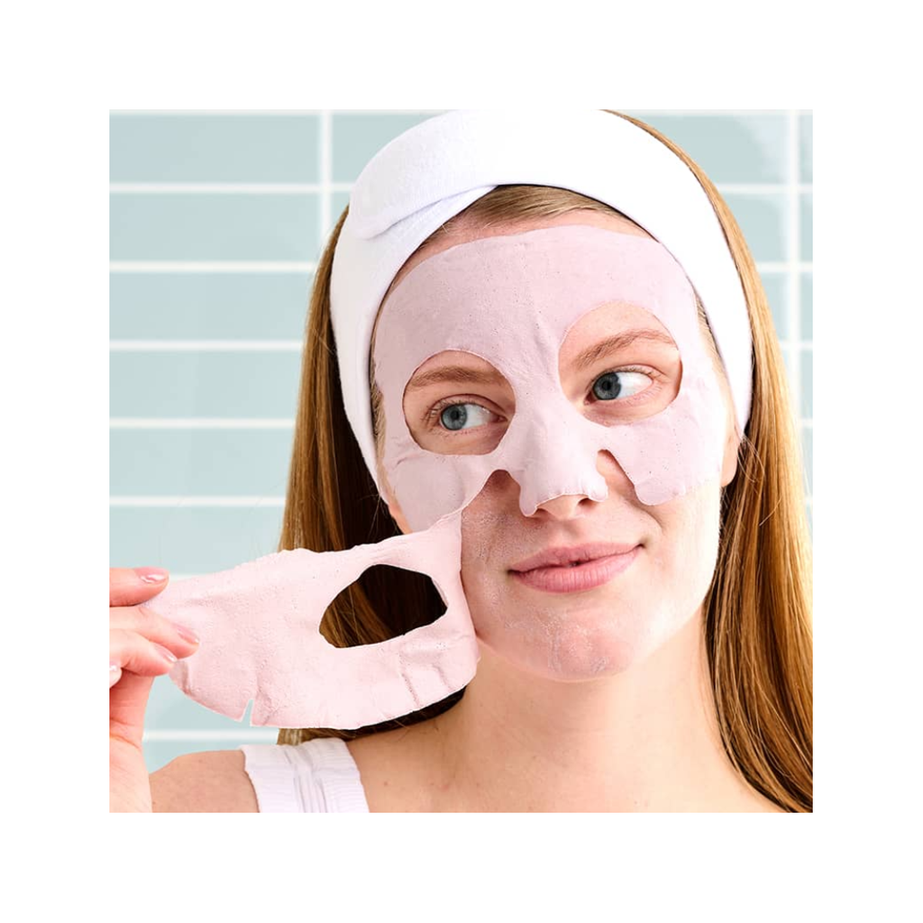 SmartMud™ No-Mess Mud Sheet Mask comes in two pieces (one for the upper portion of your face and one for the lower).