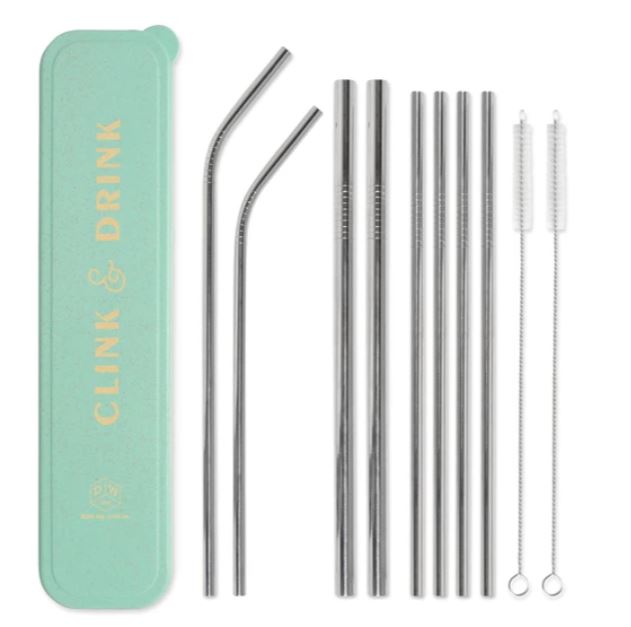 Re-usable stainless steel beauties in an eco storage case made of wheat straw. you'll be saving the planet, one sip at a time!
