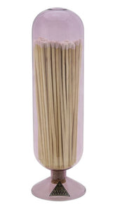 Skeem Design founders discovered this vessel shape in Japan and while. Each piece is hand blown and fitted with a cork stopper in the bottom. Once the matches are gone, it can be a curiosity used to display a found specimen.